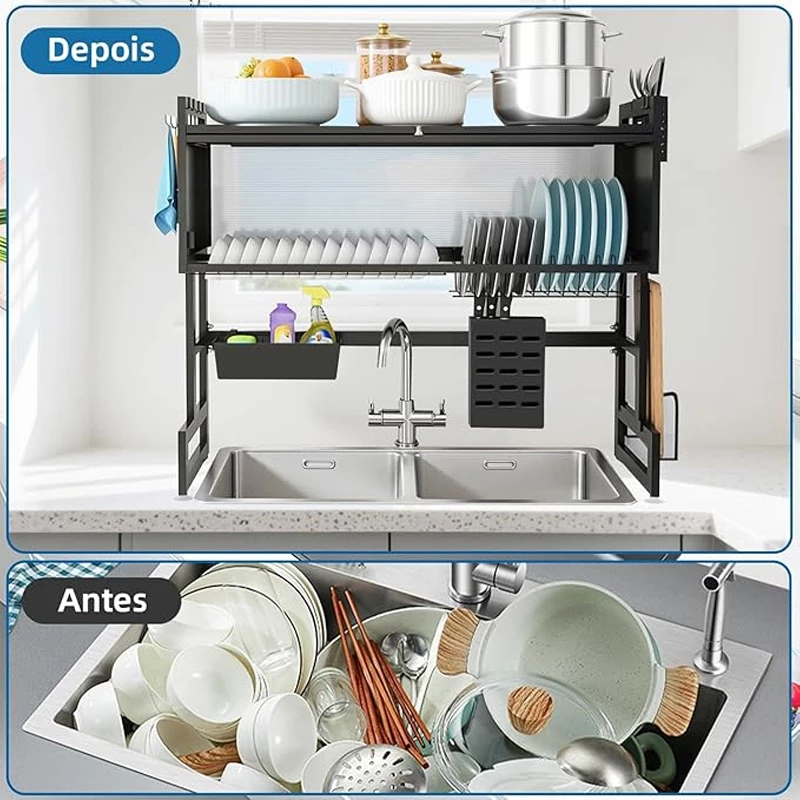 Se você mora em um apartamento pequeno ou quer deixar a cozinha mais funcional, esse organizador é perfeito. Ele transforma o espaço sobre a pia em um armário extra, e você não precisa mais correr para pegar o que precisa enquanto cozinha.