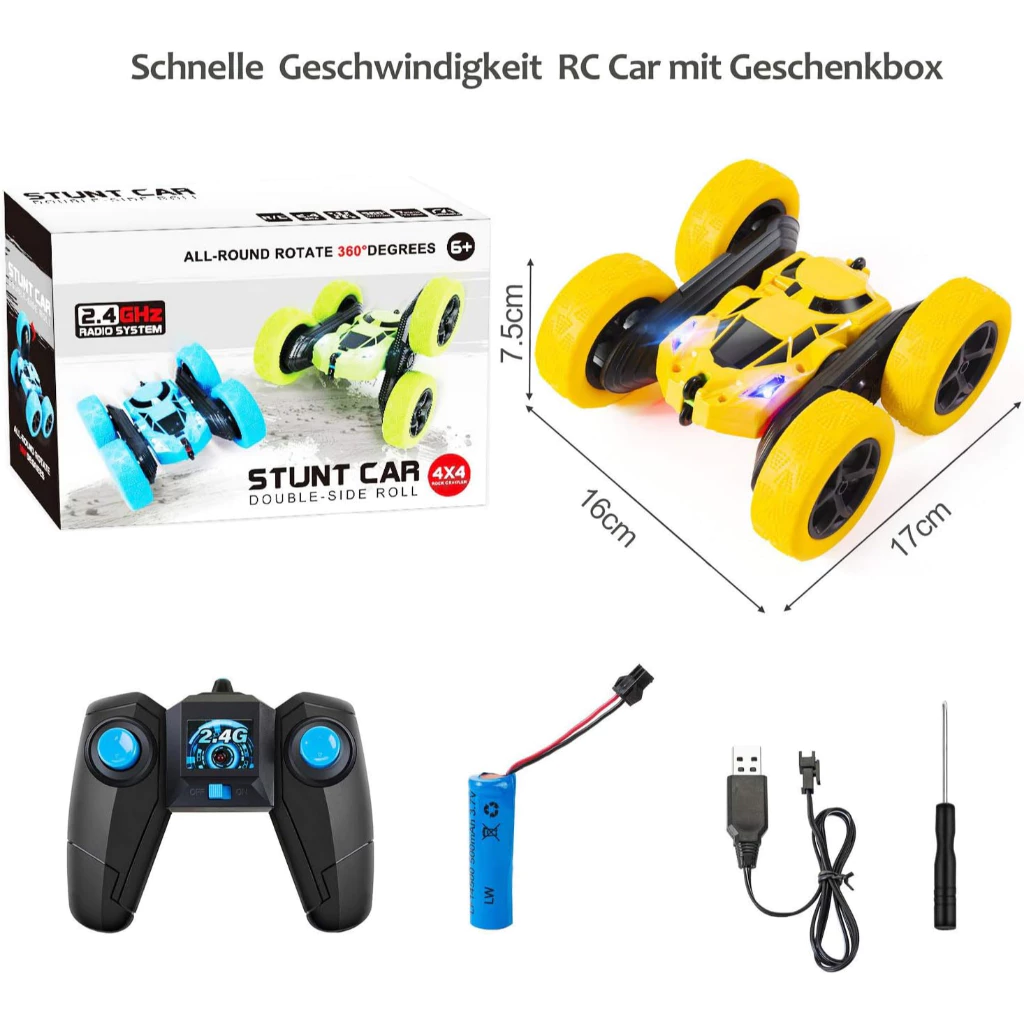 Carro de controle remoto de 2,4 GHz dupla face 360 ° giratório carro de acrobacias com faróis, brinquedo de carro de controle remoto com tração nas quatro rodas off-road