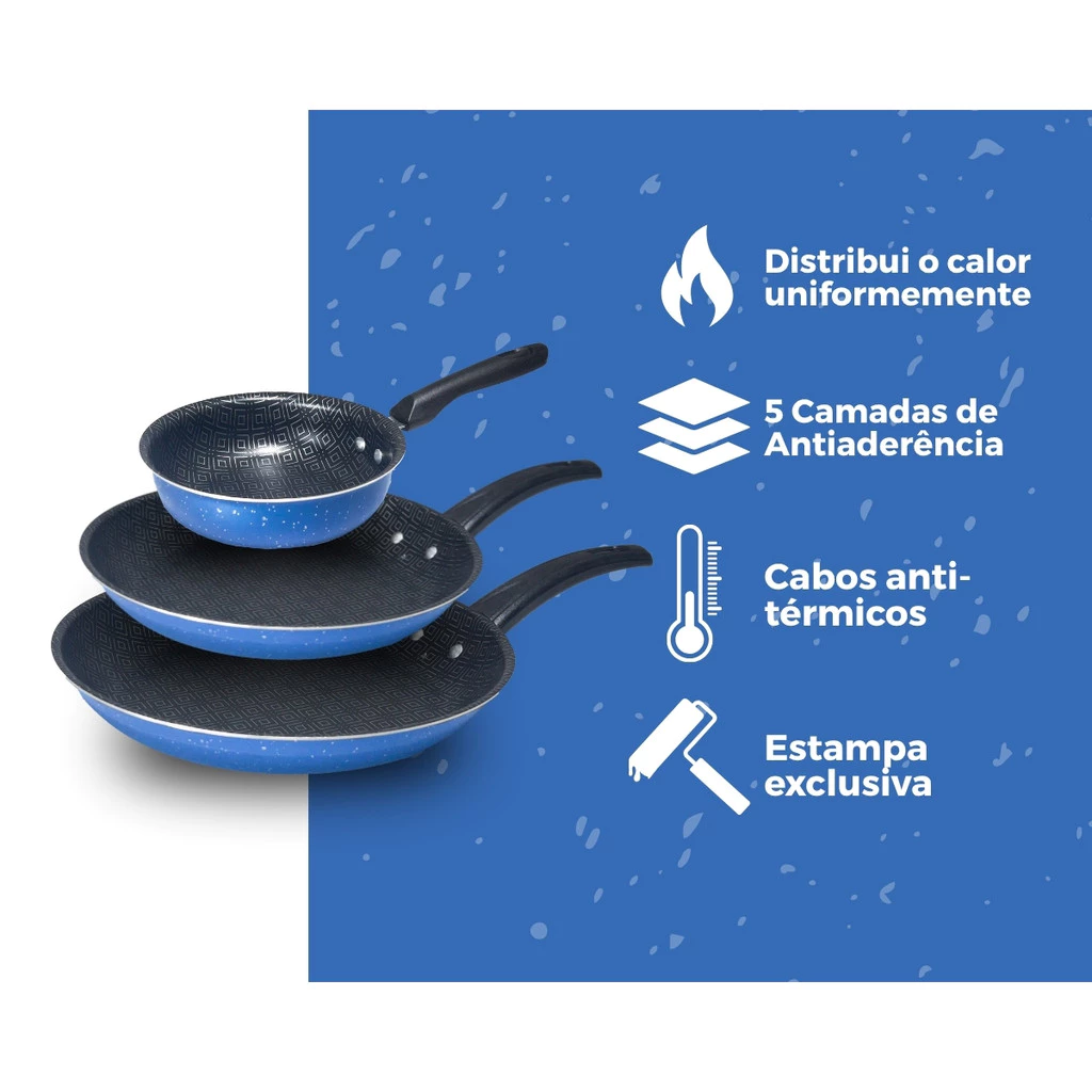 Conjunto de Frigideira 3 Peças Antiaderente Teflon Global