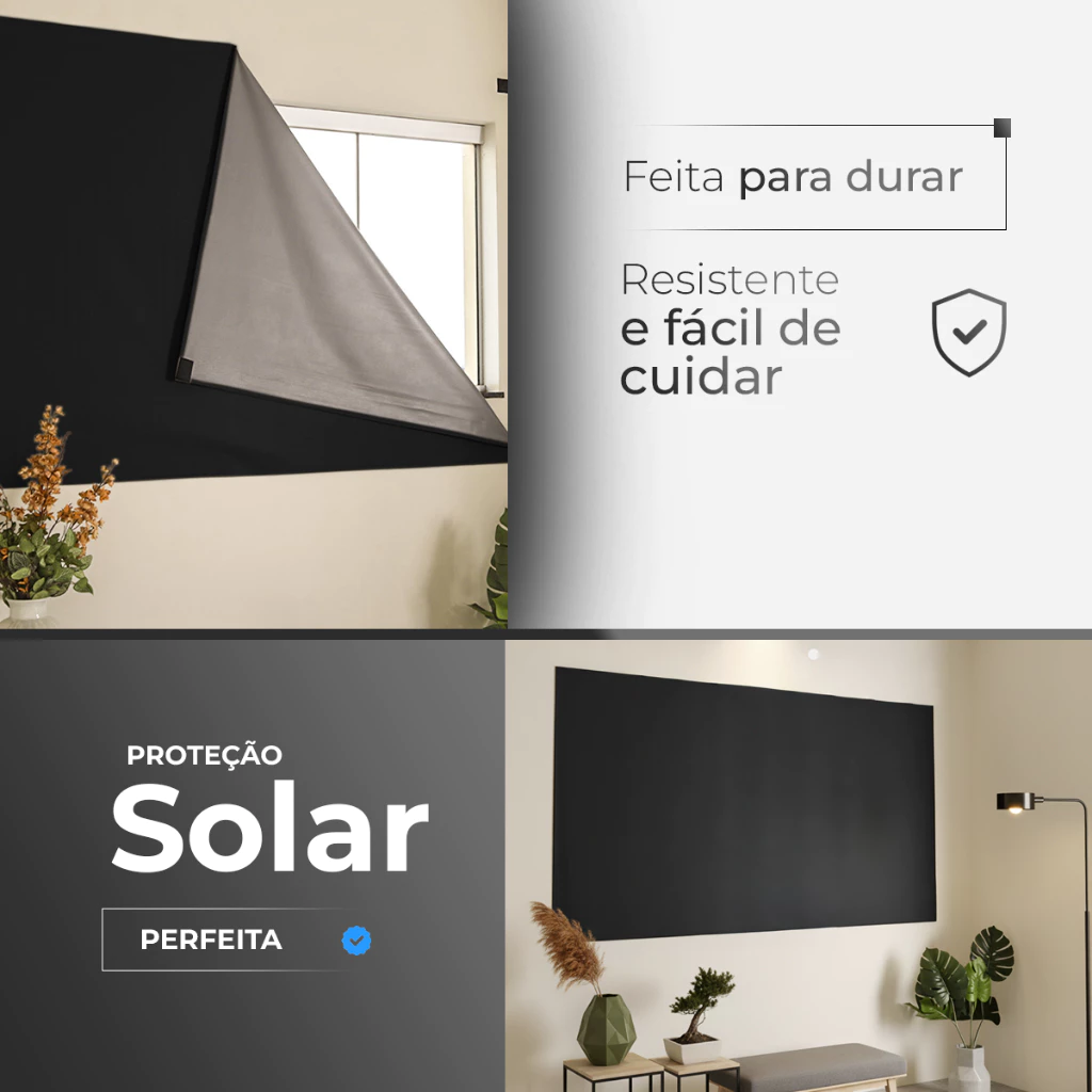 Essa cortina é pra quem quer resolver de forma rápida e prática o problema da claridade no ambiente. Ela bloqueia 100% da luz, é fácil de instalar e não precisa furar parede. Ideal para quartos, salas, escritórios ou qualquer espaço que precise de mais conforto e privacidade.