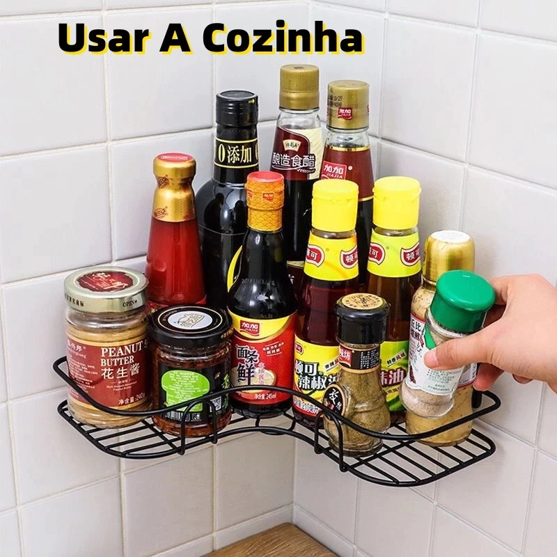 Prateleira Multiuso de Metal com design moderno, não há necessidade de fazer furos, fácil de criar uma cozinha limpa e banheiro dos sonhos.