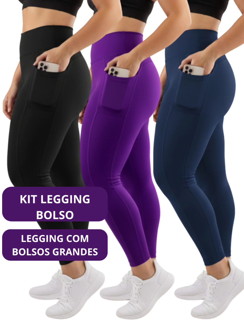 Nossas calças leggings são projetadas para unir estilo, qualidade e conforto, acompanhando você no dia a dia e em qualquer desafio. Este kit com 3 peças é perfeito para quem busca praticidade e economia sem abrir mão do design moderno.