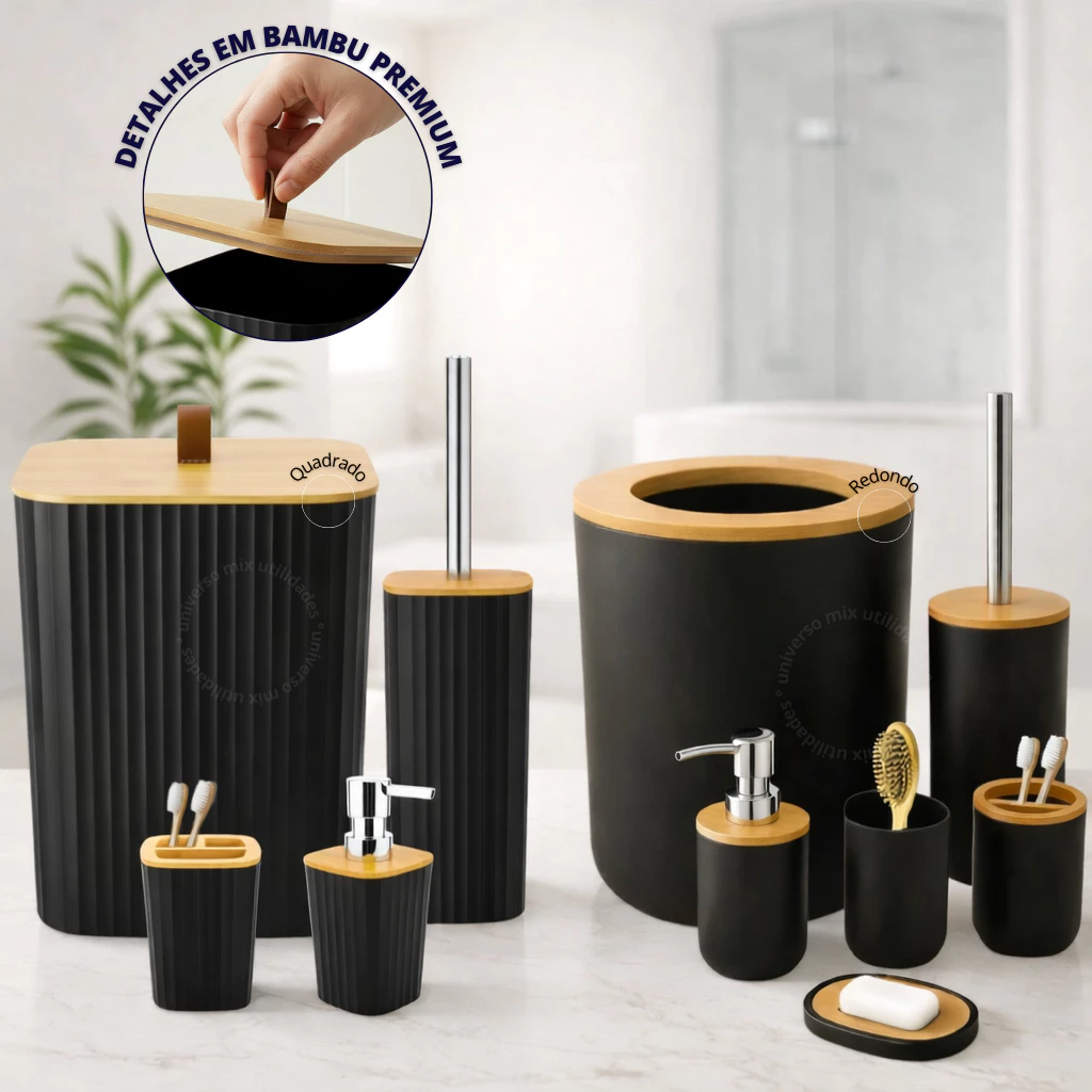 Kit Banheiro Completo com Lixeira e Detalhes em Bambu: Eleve o estilo do seu banheiro!