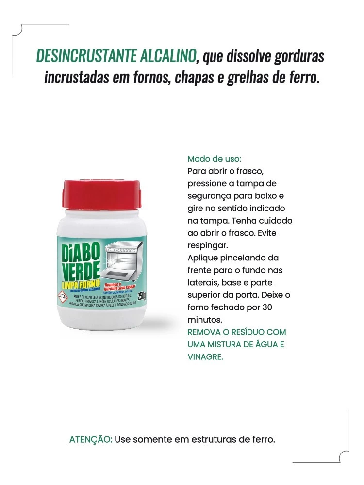Diabo Verde Limpa Forno 250g – Desengordurante Alcalino com Aplicador Interno