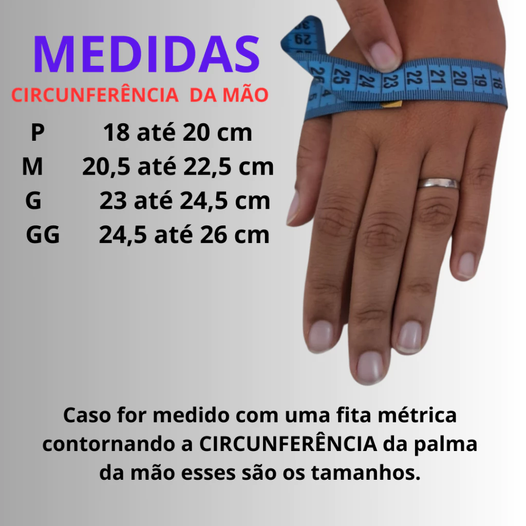 (Deve ser medido com uma fita métrica contornando a CIRCUNFERÊNCIA da palma da mão)