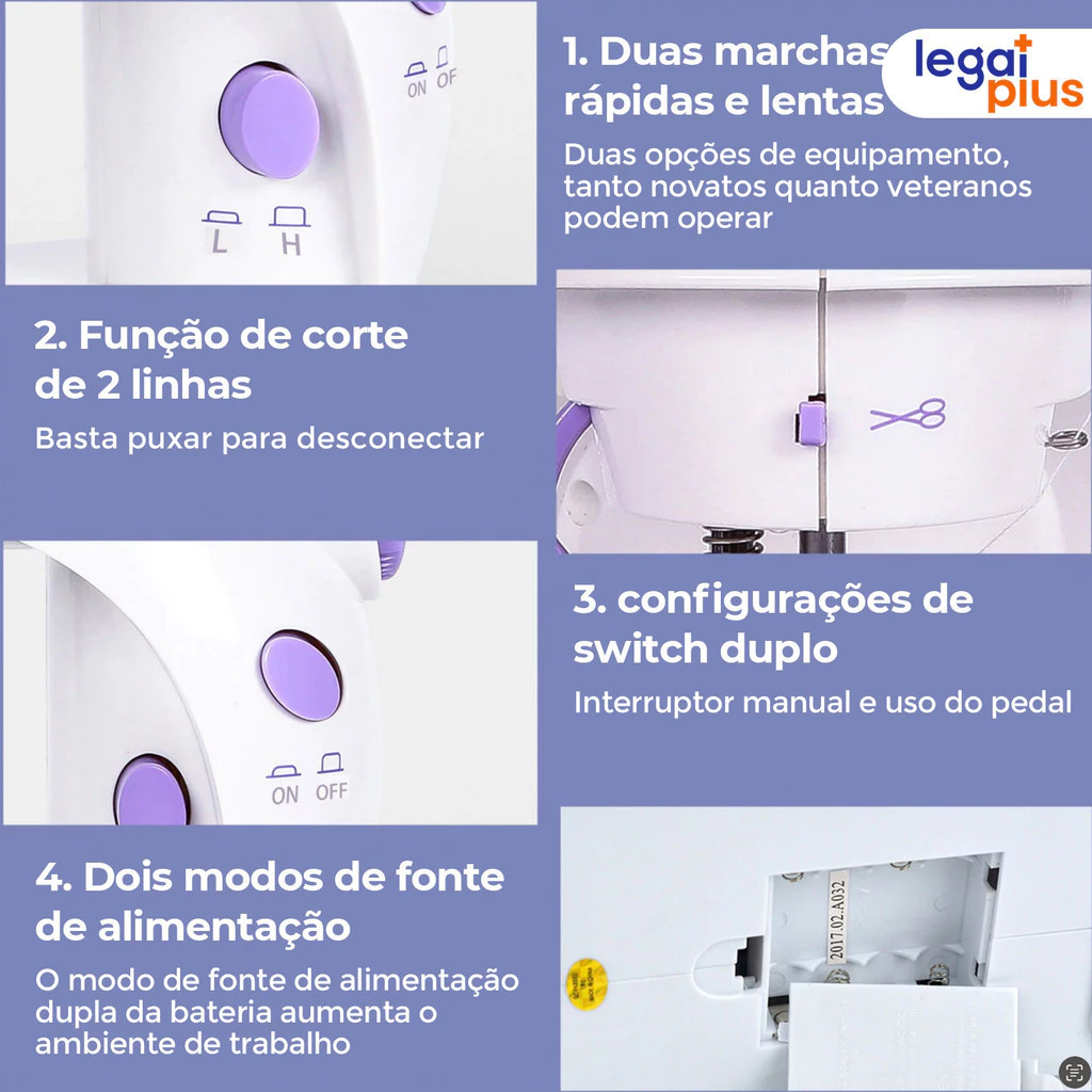 Pequena, leve e com um bom espaço da base para guiar a costura