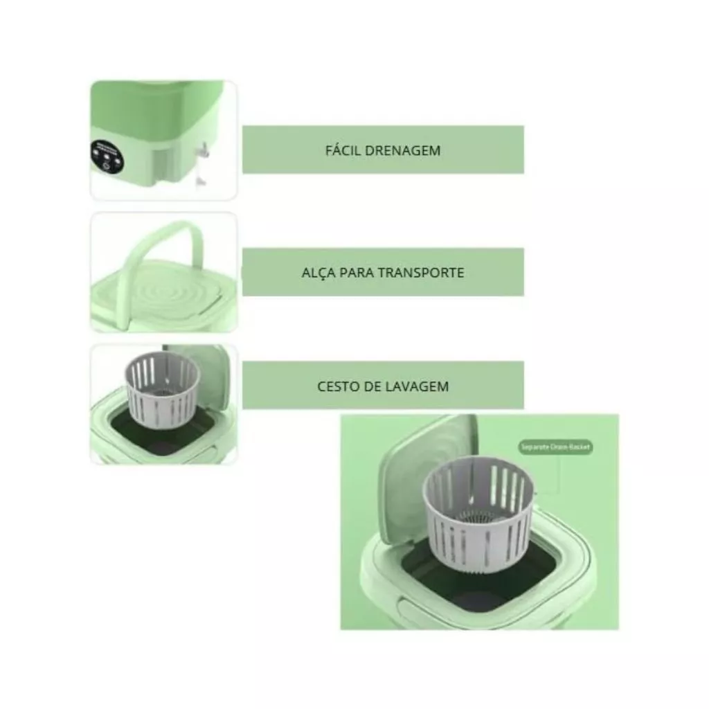 Desenvolvida para facilitar a rotina, esta mini máquina de lavar portátil combina design compacto, baixo consumo de energia e eficiência na lavagem, sendo ideal para quem precisa lavar pequenas quantidades de roupas com praticidade e segurança.