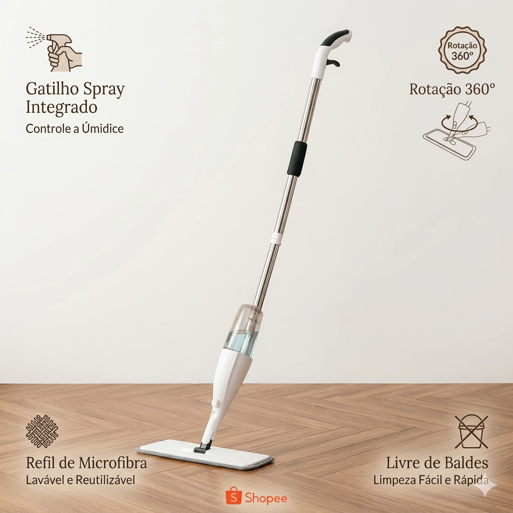 Chega de balde, pano e complicação! O Mop Spray é a solução moderna e eficiente para manter sua casa limpa com rapidez e sem esforço.
