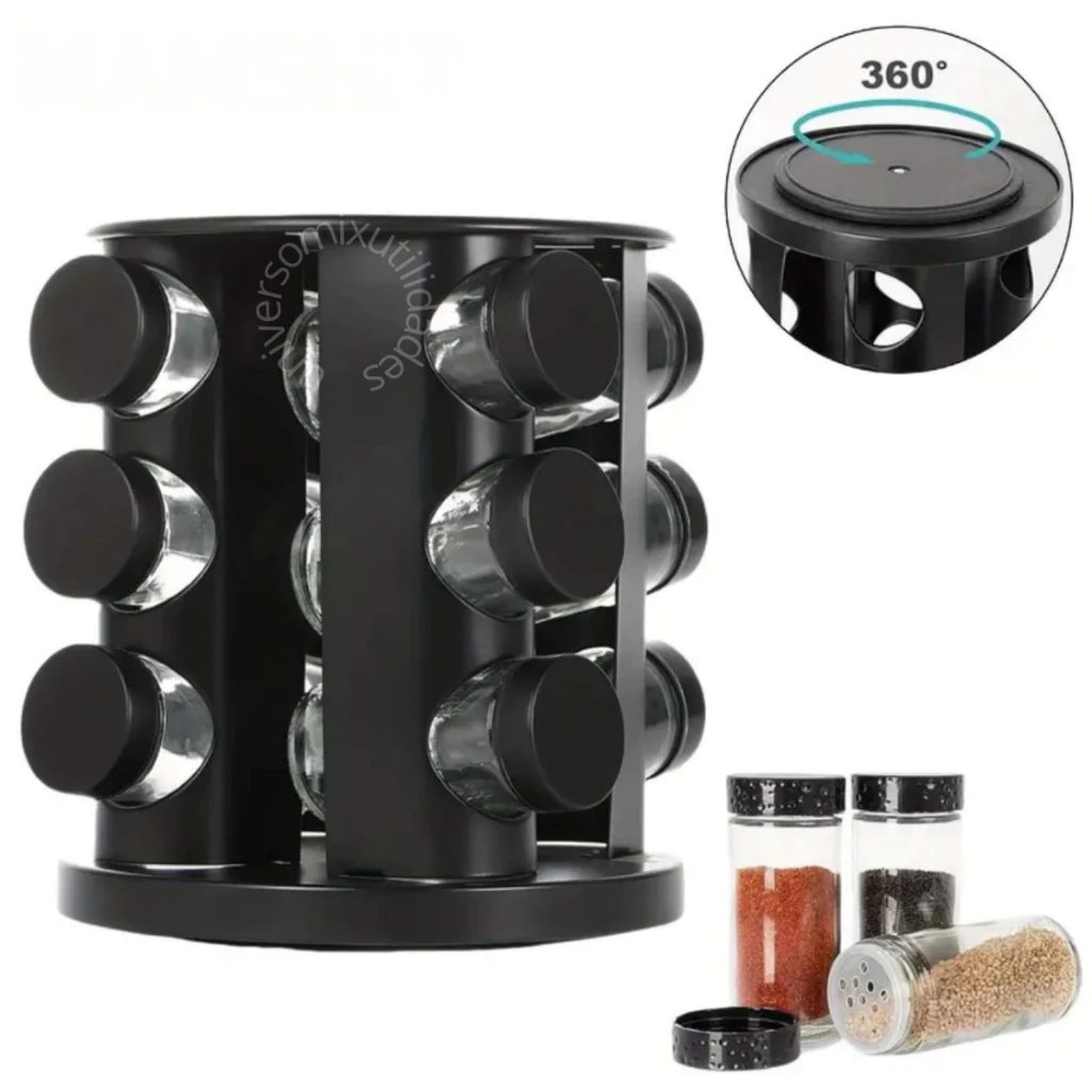 – Gira 360 Graus: O sistema giratório permite fácil acesso a todos os temperos, tornando o processo de cozinhar mais ágil e prático. Basta girar para encontrar o tempero desejado!