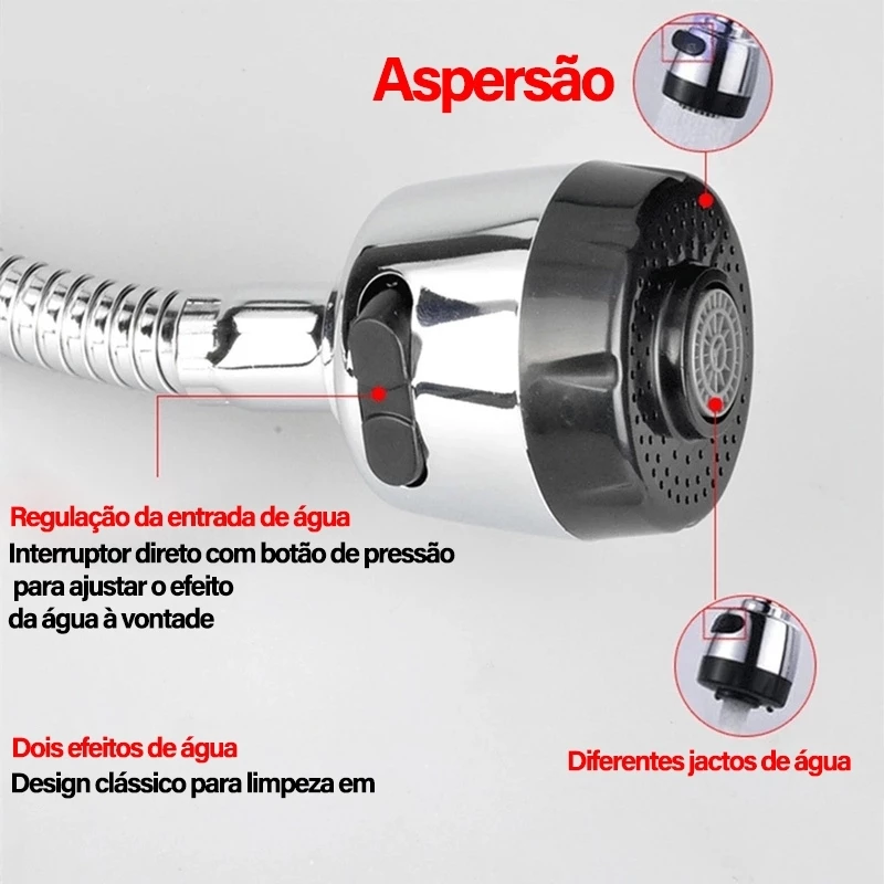 -Arejador em ABS cromado de alta resistência com dupla função: jato continuo ou estilo chuveirinho